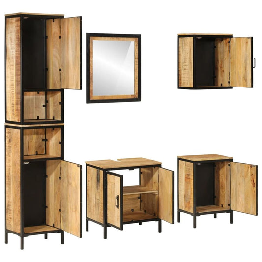 vidaXL 5 Piece Bathroom Furniture Set Iron and Solid Wood Mango