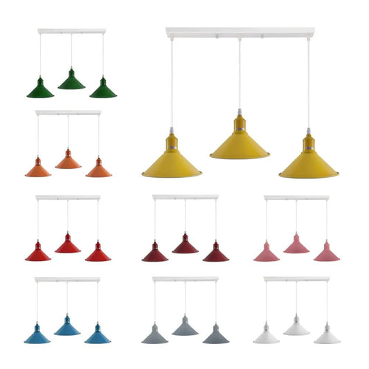 Industrial Vintage Loft Kitchen Bar 3 Lights Fittings Ceiling Cone Metal E27