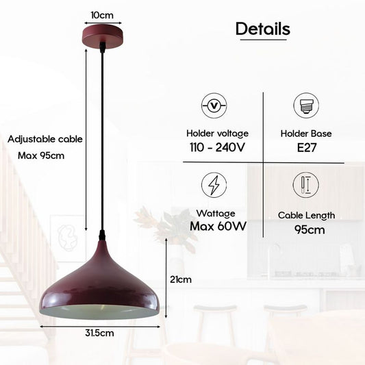 Modern Bowl Burgundy Hanging Pendant Ceiling Lamp Lighting UK E27 Pendant Light