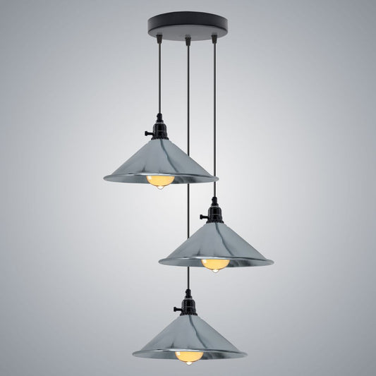 Industrial 3 Head Cluster Ceiling Pendant Light with Adjustable Cord E27 Base,Metal Light Fitting, Cone Shaped Light