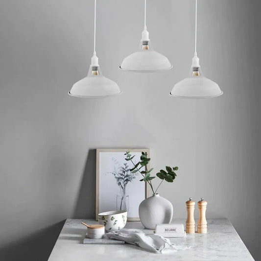 Vintage Industrial Ceiling Pendant Light, White Metal Shade Hanging Chandelier Lights