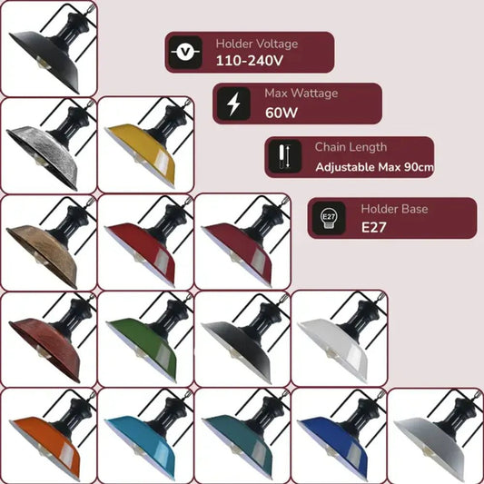 Vintage Industrial Burgundy Ceiling Pendant Light Shade Hanging Lamp Light