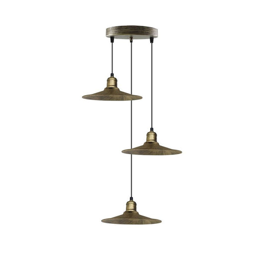 3 Head Vintage Industrial Brushed Brass Ceiling Pendant Easy Fit Light Metal 22cm Ceiling Lighting Shade