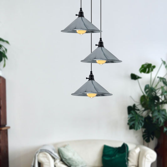 Industrial 3 Head Cluster Ceiling Pendant Light with Adjustable Cord -