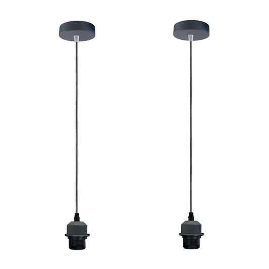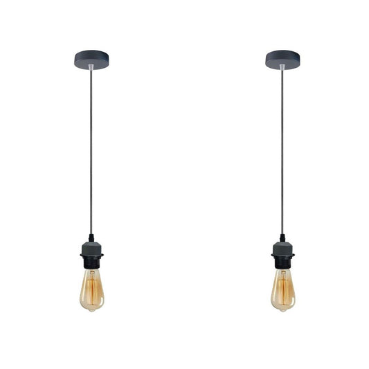 2 Pack Industrial Grey Pendant Light Fitting, Lampshade Holder Fitting Set With PVC Cable.