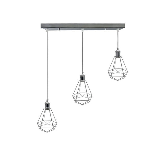 3 Head Rectangle Base Chrome Vintage Industrial E27 Ceiling Hanging Light Cage Shade
