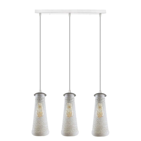 3 Head Rectangle Base Handmade White Woven Twine Shade Ceiling Pendant Light Shade