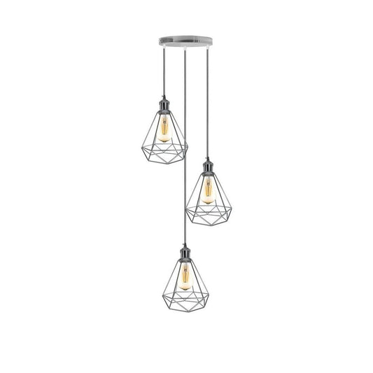 3 Head Round Base Chrome Vintage Industrial E27 Ceiling Hanging Light Cage Shade