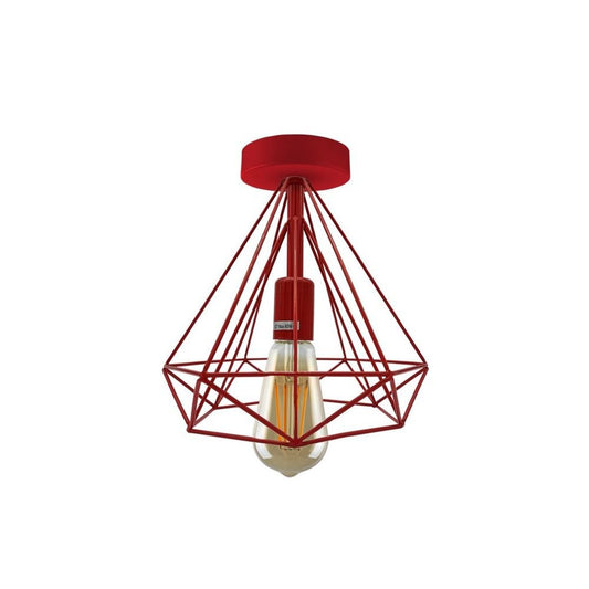 Red Vintage Semi Flush Mount Ceiling Light Fixture Metal Cage Ceiling Lampshade with E27 Holder