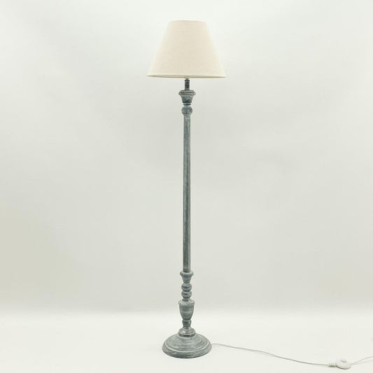 Wood Tripod Floor Lamp Home Lighting Elegant E27 Bulb Linen Shade Grey