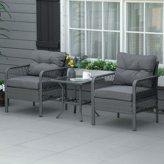 3 Pieces Patio PE Rattan Bistro Set w/ Armchairs Tempered Glass Table Outsunny