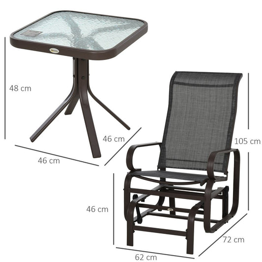 3 piece Outdoor Swing Chair with Tea Table Set, Patio Garden Rocking Furniture