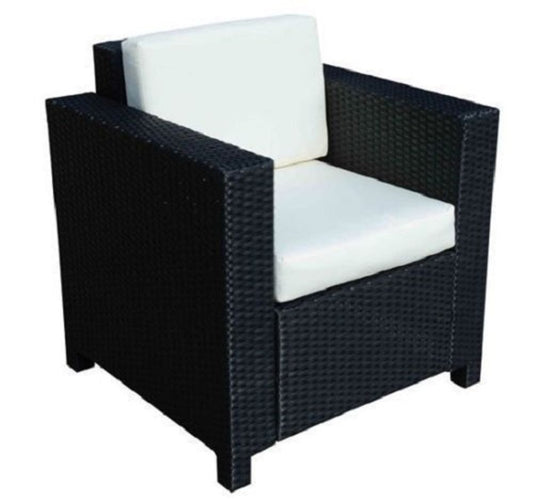 2-Seater PE Rattan Side Table & Armchair Bistro Set w/ Pillows Black