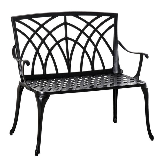 Outsunny 2-Seater Cast Aluminium Garden Bench Loveseat Ergonomic Armrest