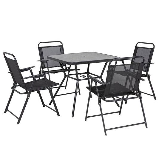 Outsunny Outdoor Dining Set W/ Umbrella Hole Table, Patio Furniture Sets, Black