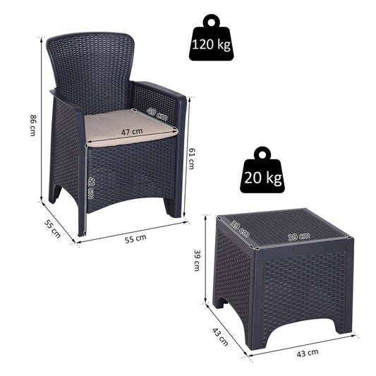 3-PCS Garden Coffee Set Rattan Chair with Coffee Table Cushion High Load Patio