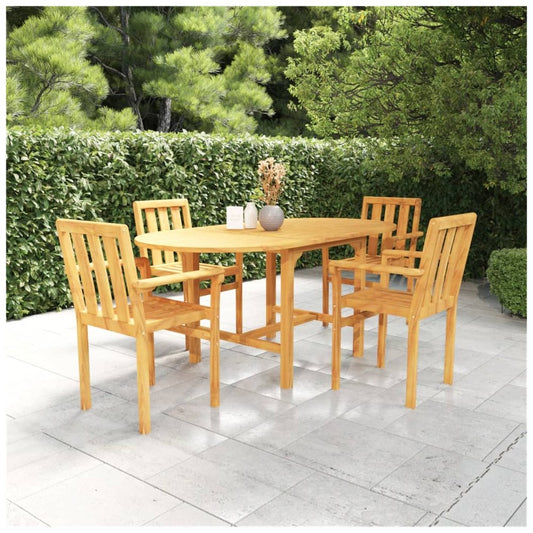 5 Piece Garden Dining Set Solid Teak Wood