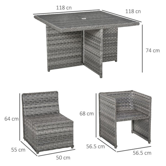 9 PCs Rattan Dining Table Chair Set 8-seater Cube Sofa & Umbrella Table Grey