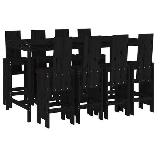 vidaXL 9 Piece Garden Bar Set Black Solid Wood Pine