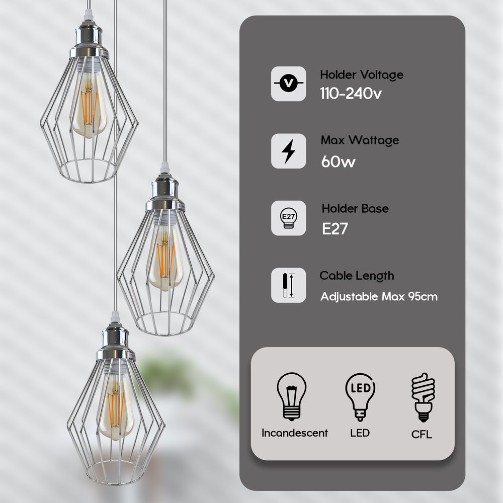 - This pendant ceiling lamp chrome diamond open cage design gives an industrial feel to the lamp, making it a good fit for rustic decor styles.