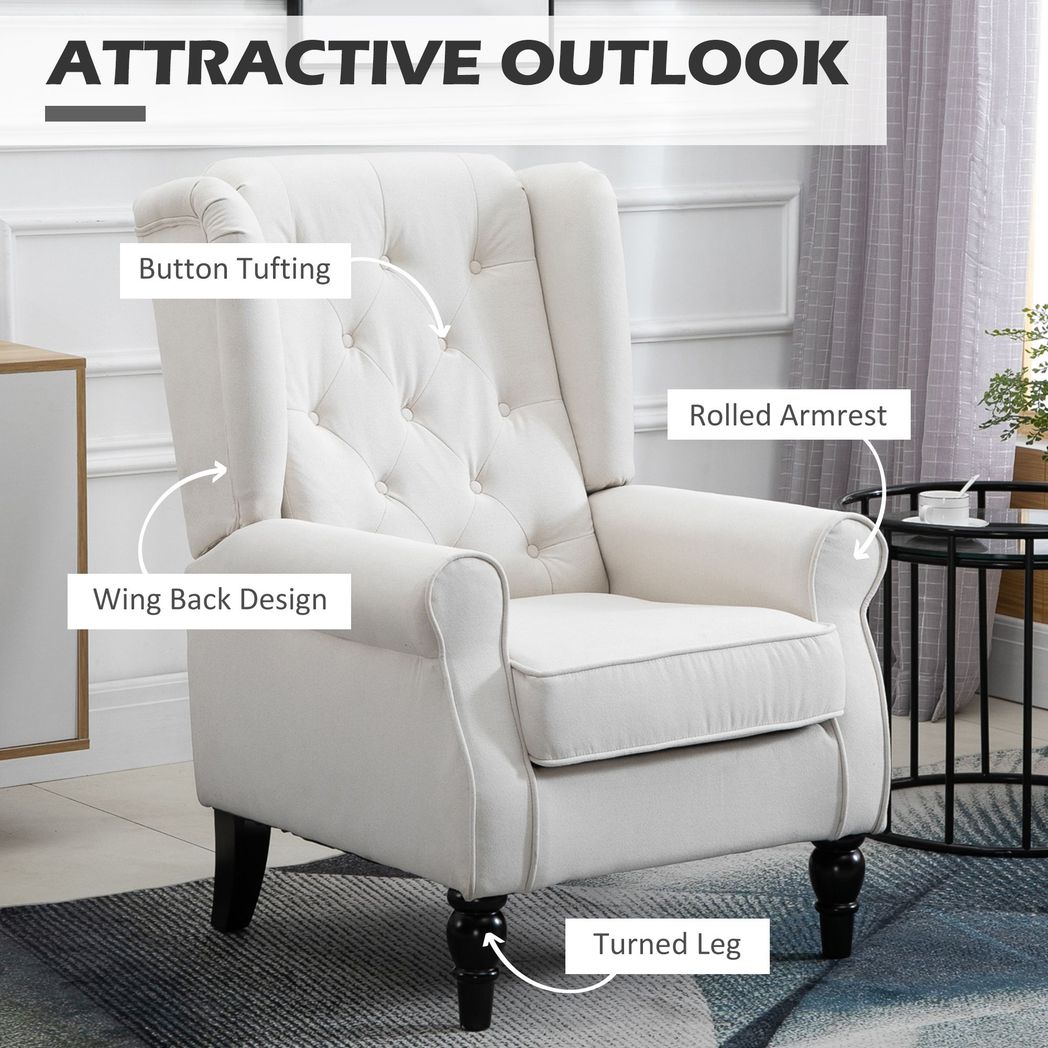 '- "HOMCOM Accent Armchair Home Furniture Retro Tufted Club Wood Fabric Cream White"