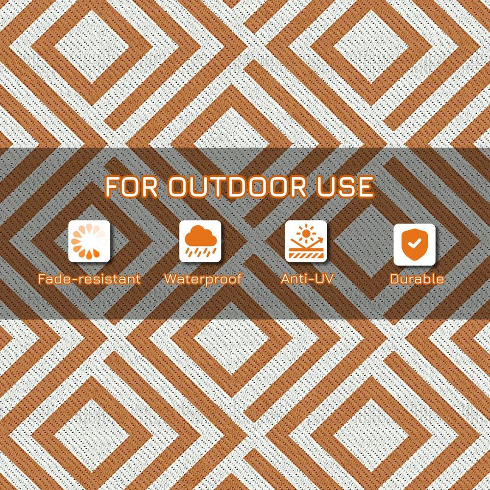 Reversible Outdoor Rug W/ Carry Bag for RV Camping Beach, 182 x 274 cm, Brown
