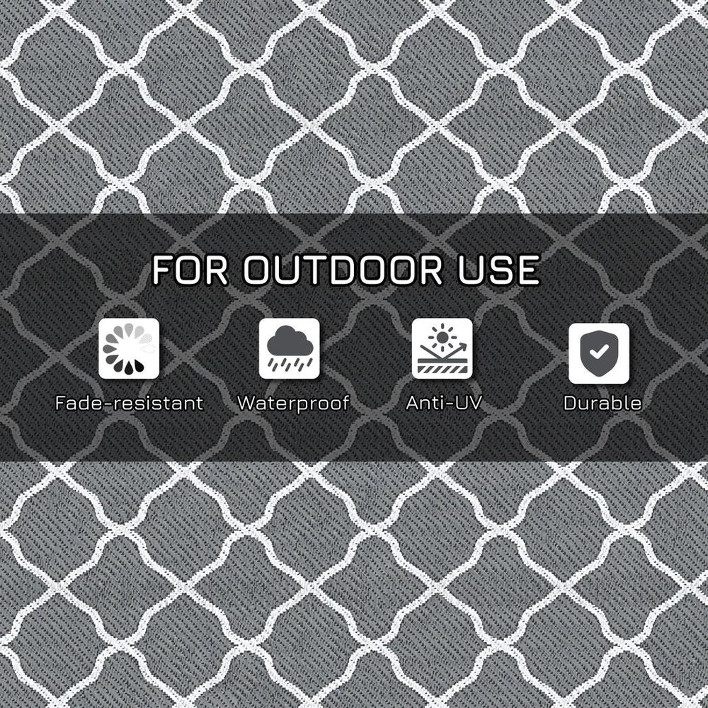 Reversible Outdoor Rug W/ Carry Bag for RV Camping Beach, 182 x 274 cm, Grey