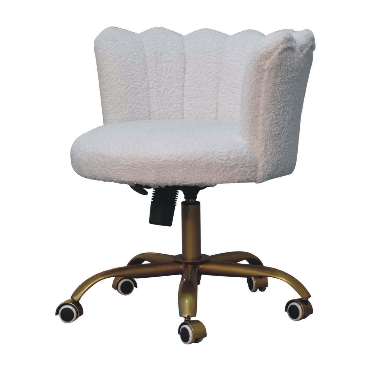 Upholstered in a snow white boucle this occasional chair would fit in beautifully in a bedroom or study room, it poses a simple yet elegant design meaning it will easily become your favourite piece in the home. It has a swival base meaning it can be moved around easily, and adjusted to your height accordinglky.
